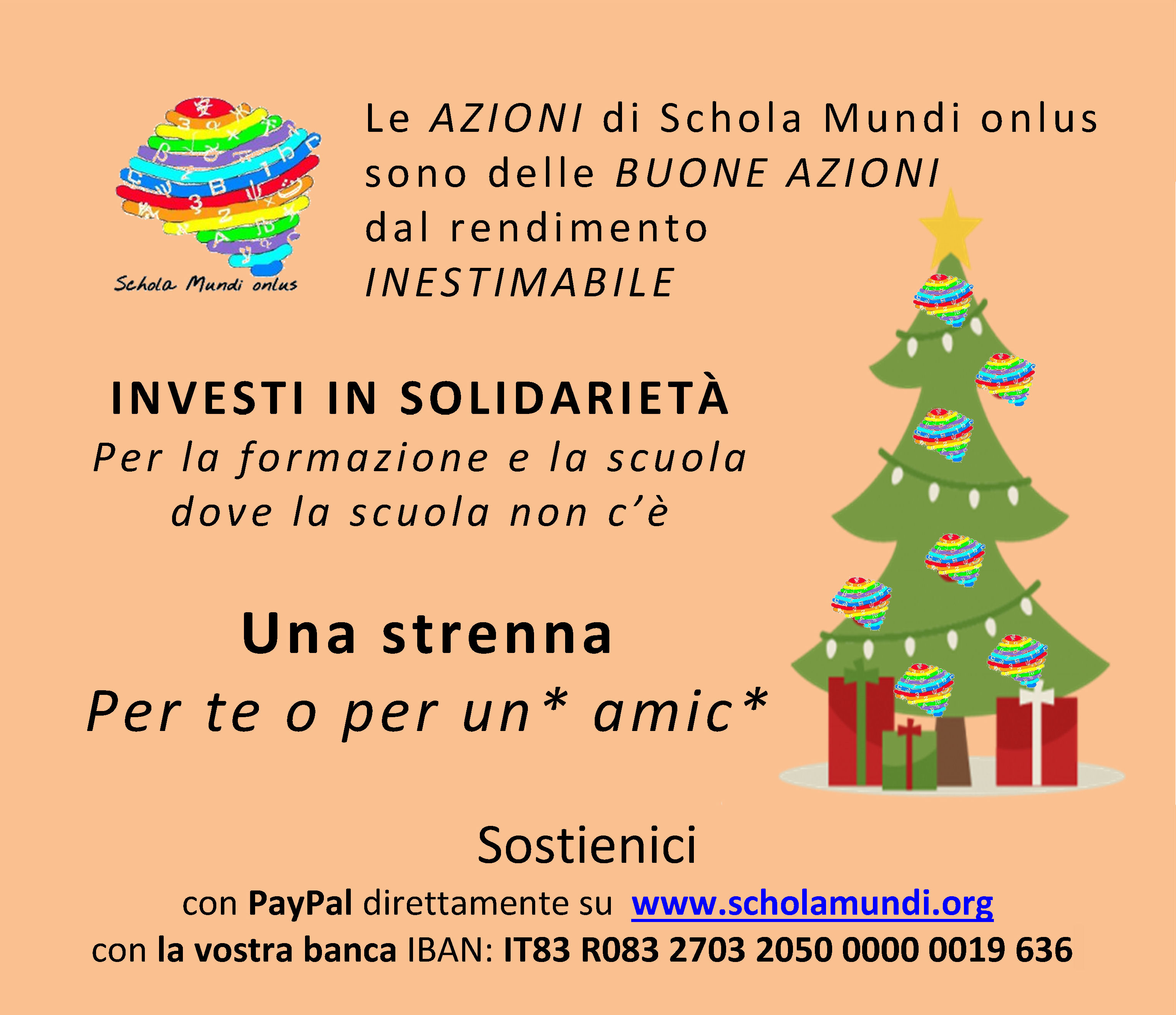 Sostienici: Schola Mundi Onlus - IBAN: IT83 R083 2703 2050 0000 0019 636 - 5x1000 al C.F. 97695180584