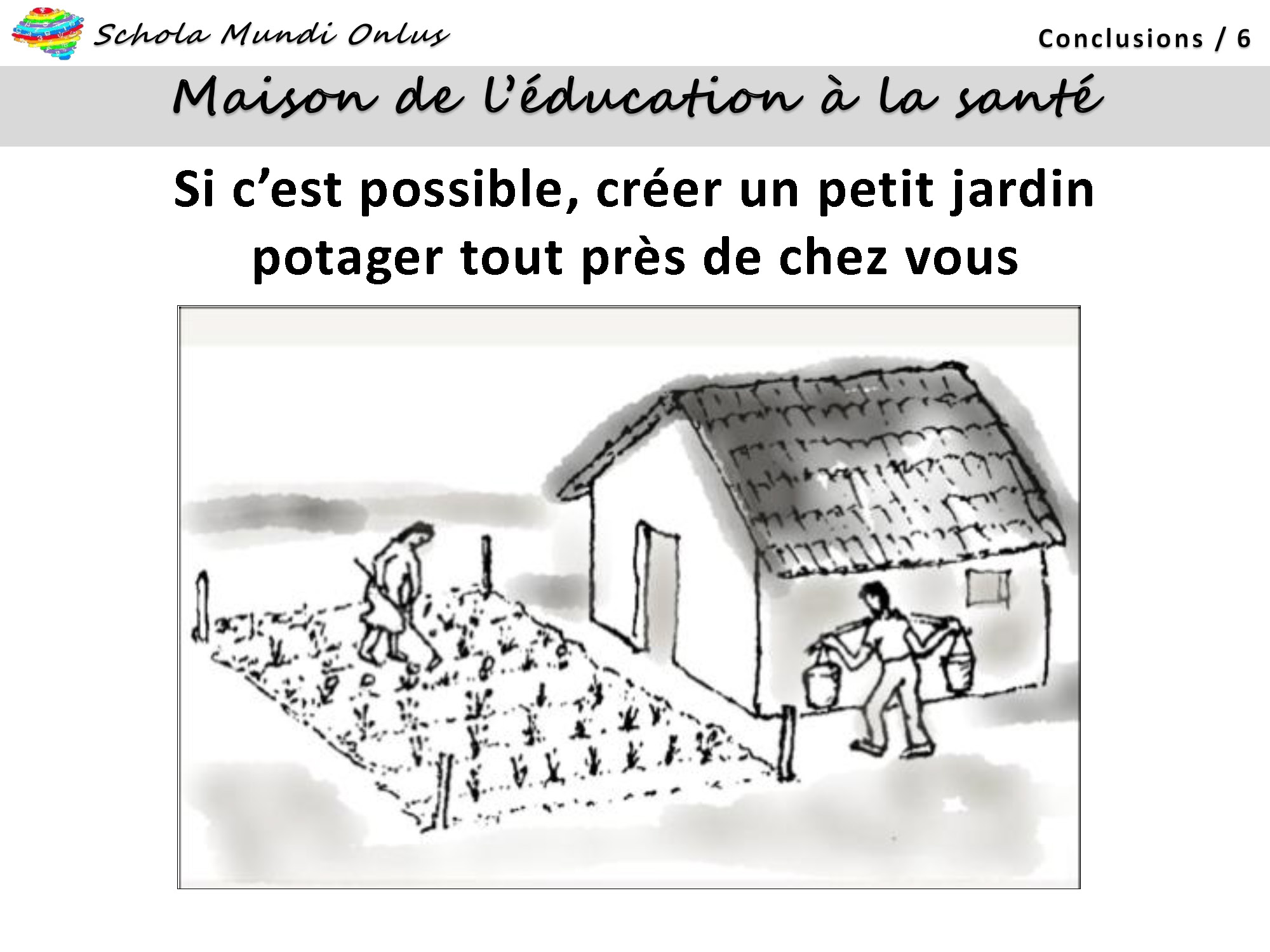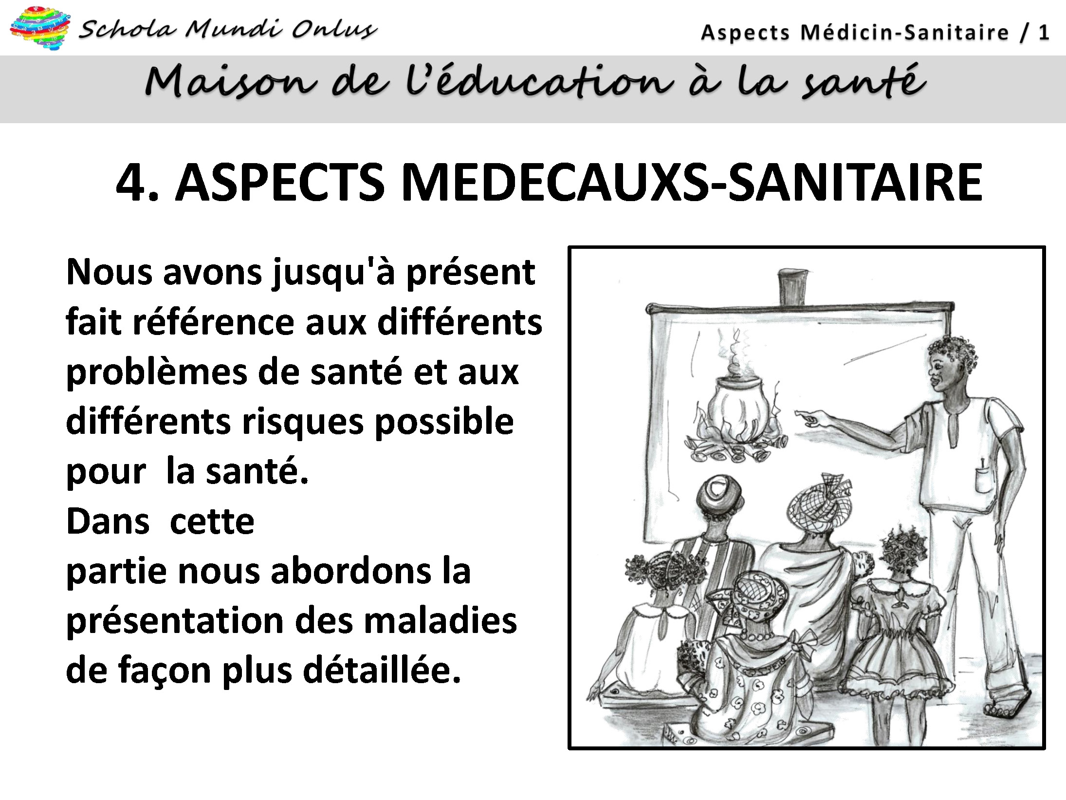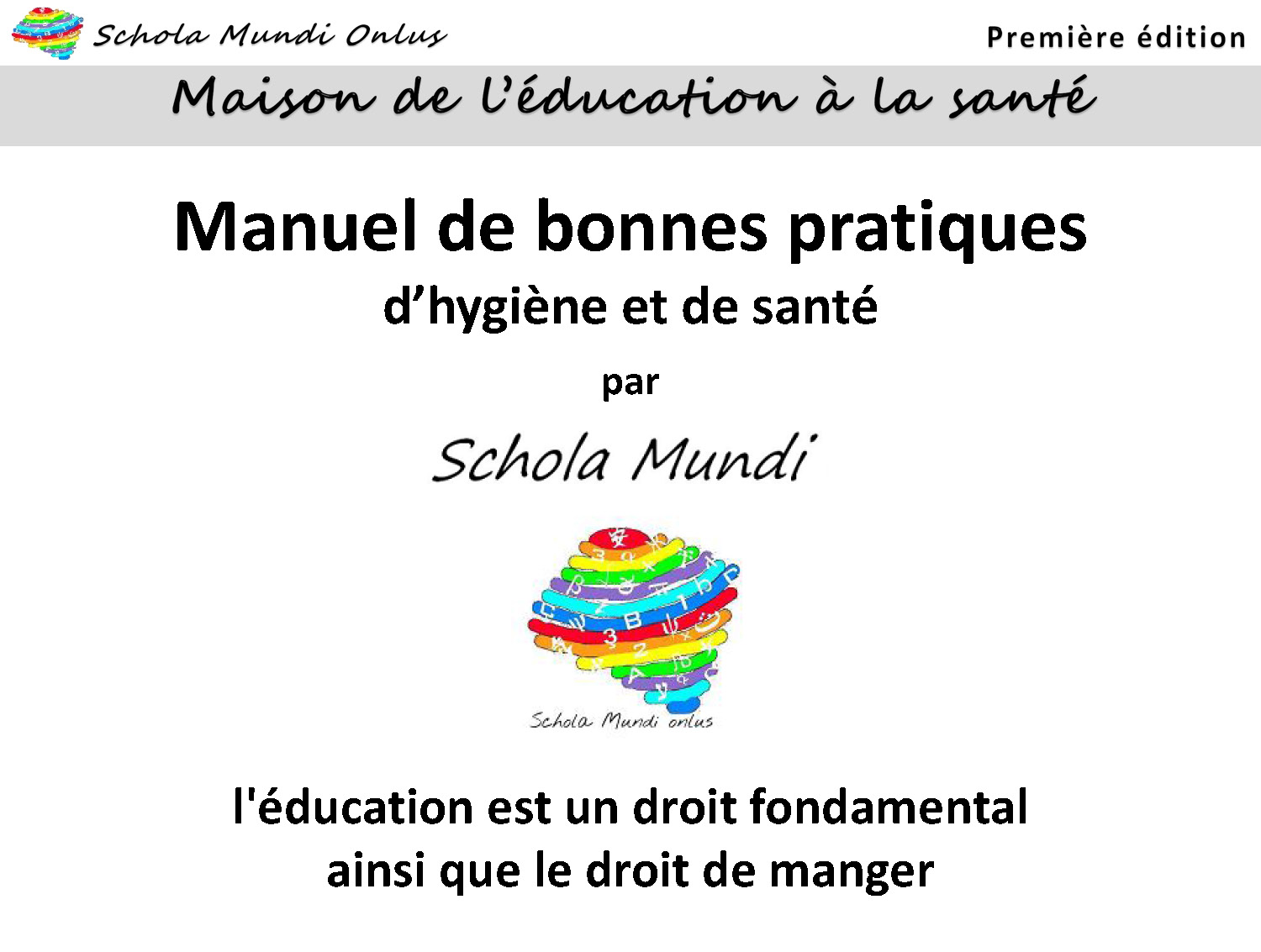 Nell’ambito del Progetto della ‘Maison de l’Éducation’ di Schola MIndi onlus sono state di seguito previste la realizzazione di un Corso di Formazione di Educatori e una serie di Campagne di Sensibilizzazione alle Buone Pratiche Igienico-sanitarie per la Buona Salute, che potrete seguire sul sito tra i ProgettiEducazione all’Igiene e alla Salute.