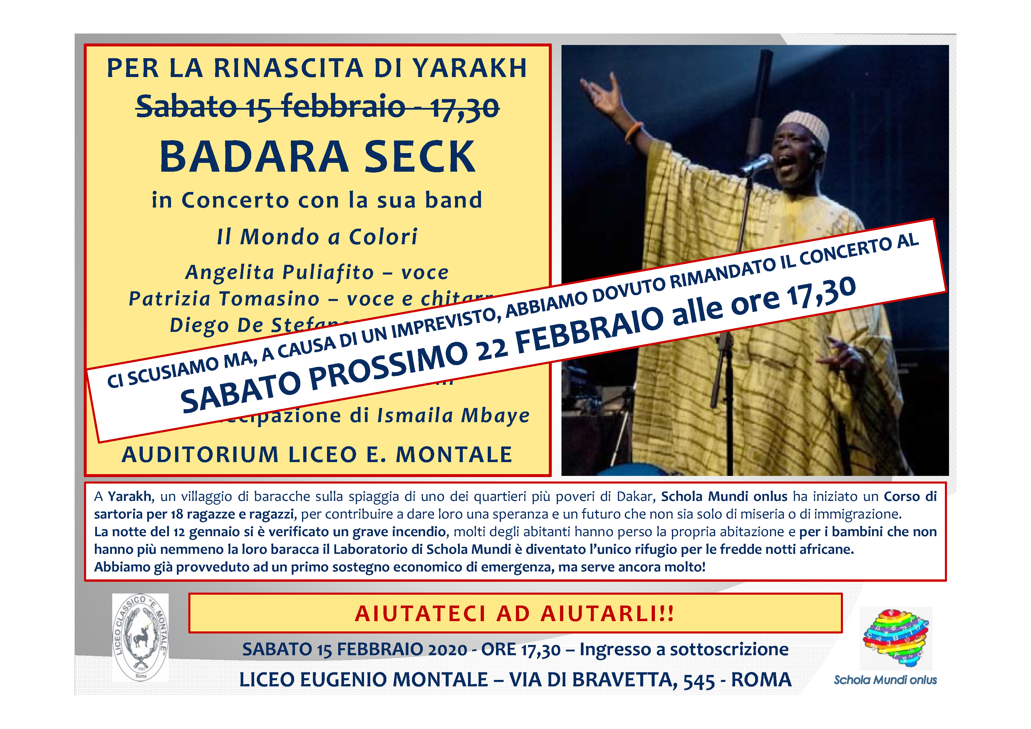 Il concerto è destinato a raccogliere fondi per sostenere la rinascita di Yarakh, uno dei quartieri più poveri di Dakar, Senegal, dove lo scorso 13 gennaio si è verificato un gravissimo incendio.