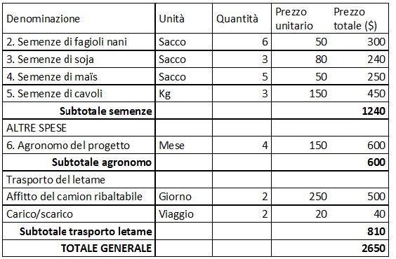 Gli Orti di Mweso: Produzione Stagione 2015A e Preventivo 2015B