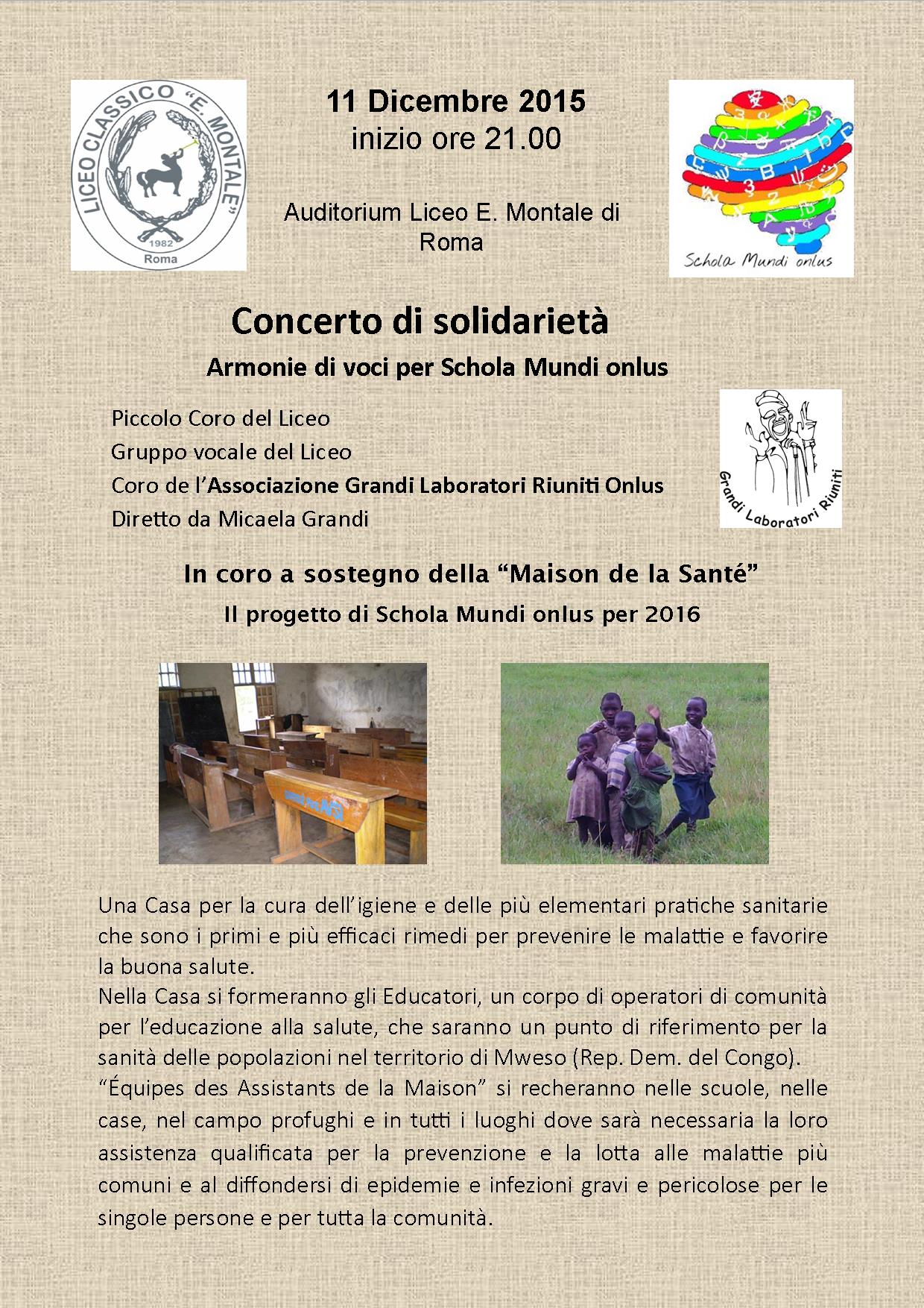 Concerto di solidarietà di Natale 2015 per la 'Casa dell'igiene e della Salute' di Mweso
