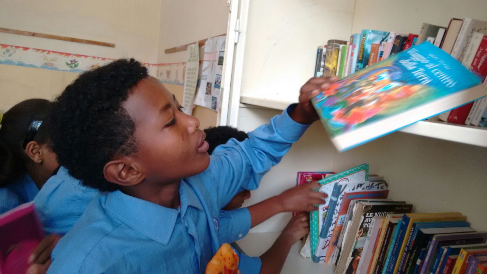 il caldo si fa sentire, l’afa ci fa schiattare, ma…. c’è un sudore che varrebbe la pena versare in questa torrida estate. Si tratta di un gesto contenuto, che potrebbe avere effetti incalcolabili per dei ragazzi che vivono ad Asmara*. E’ già successo un paio di volte che degli scatoloni di libri salpassero alla volta del Corno d’Africa. E l’accoglienza è stata entusiasmante. La biblioteca scolastica delle medie, prima inesistente, è stata presa d’assalto (vedi foto). Ora vorremmo rimpolpare un’iniziativa che mani generose hanno contribuito a rendere possibile. Quindi